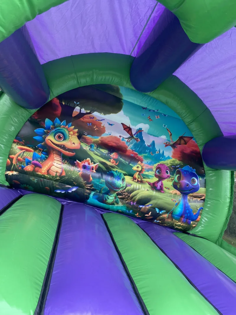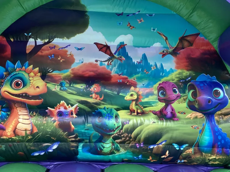 Unique stylish Dinosaur bouncy castle. Perfect for any little Dinosaur enthusiast. Playful, friendly dinosaurs featured on the castles artwork to bring your party to life and set the scene.....