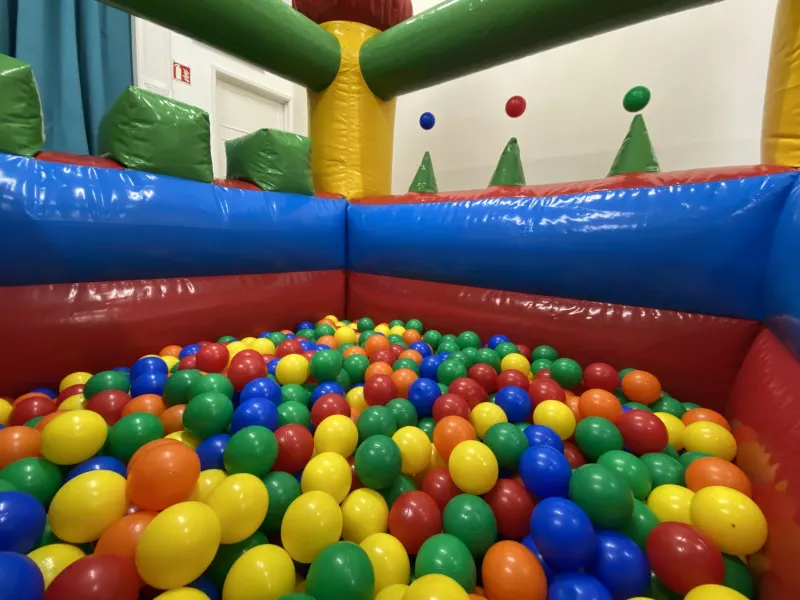This is our multicoloured activity package, which includes a re multicoloured Bouncy Castle with slide and Turret Air juggler ball pond. This is unique to us. Also very impressive attending at 8ft tall